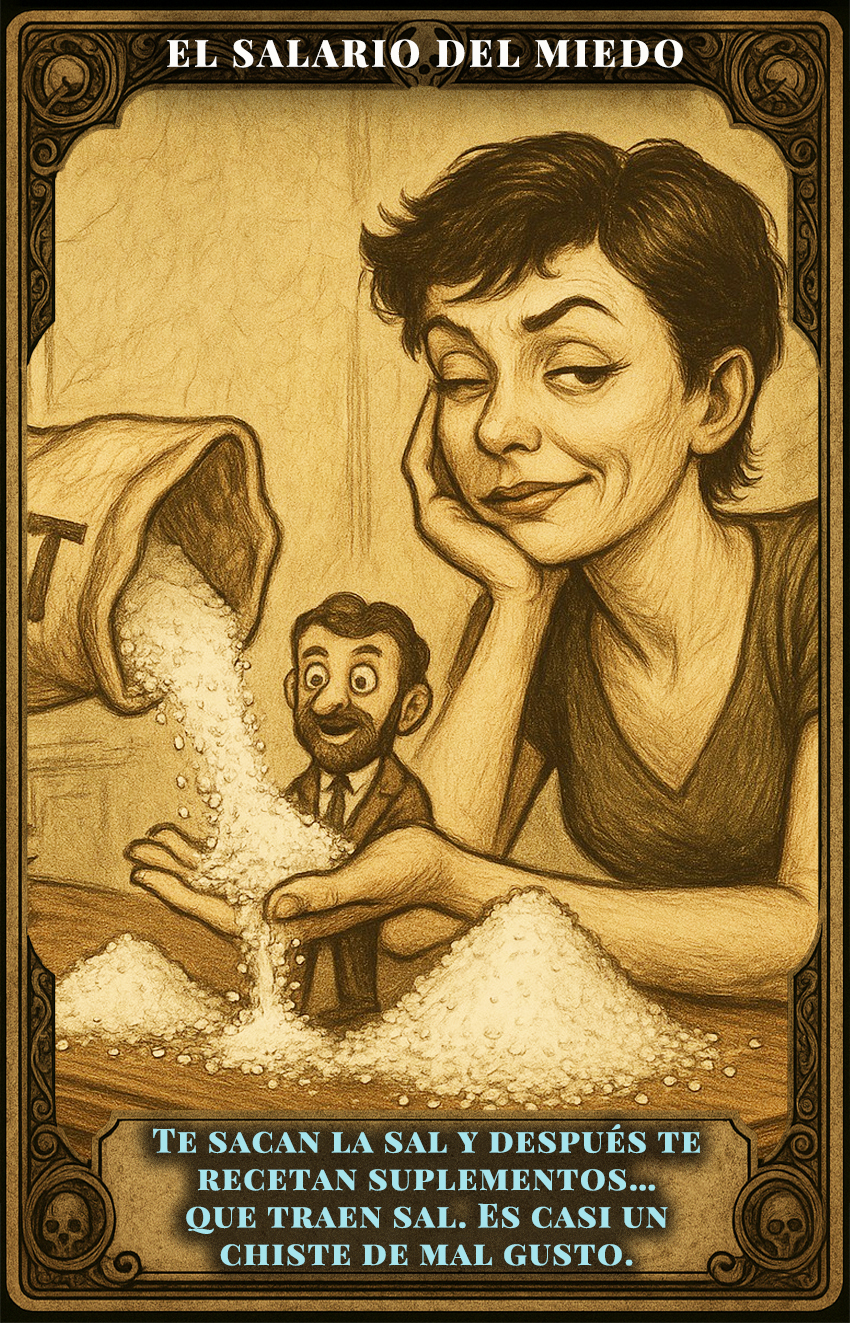 —Obvio. El negocio es redondo. Te meten miedo con la sal, te venden agua a baldes, y después te venden pastillas para reponer lo que perdiste por obedecerles.