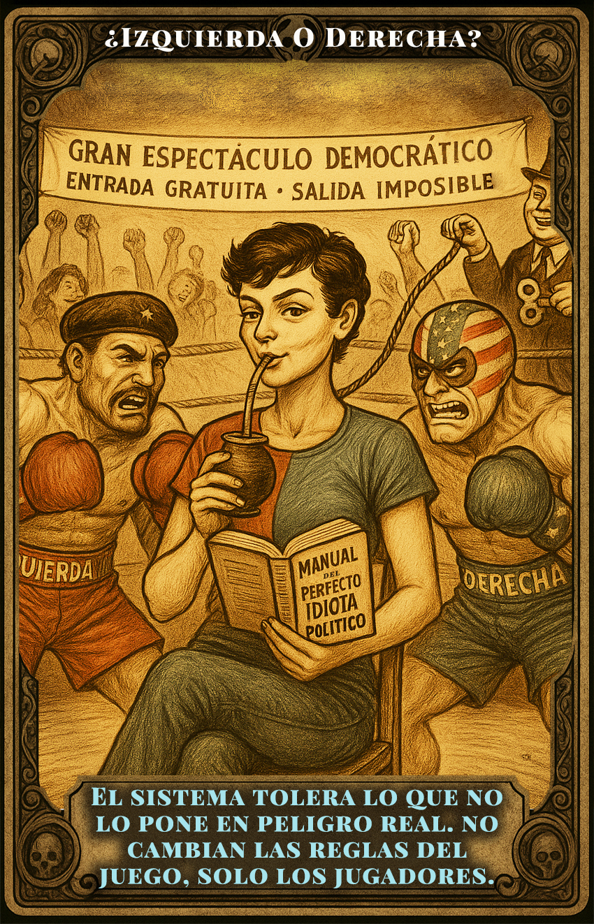 La grieta política nos obliga a elegir un bando, pero ¿y si ambos lados del mostrador venden productos vencidos? Este es un análisis crudo y directo de lo peor de la izquierda y la derecha en Argentina, un listado de los vicios que vemos repetirse sin importar quién gobierne. Porque, al final, quizás la película es la misma, solo cambian los actores.
