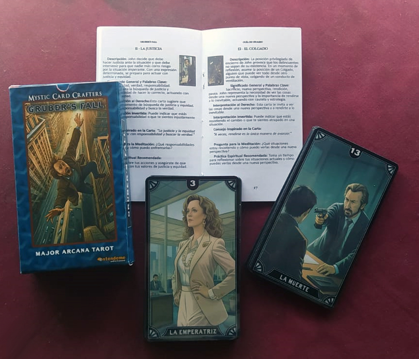 Explora el fascinante mundo de Duro de Matar a través de este increíble mazo de tarot inspirado en los arcanos mayores: Gruber’s Fall – Major Arcana Tarot. Cada carta ha sido cuidadosamente diseñada para capturar momentos icónicos de la película, relacionándolos con los significados profundos y simbólicos del tarot tradicional.